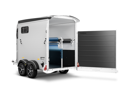 - Afsluitbare zadelkamer met uitschuifbare zadelsteun, hoofdstelhouder, spiegel en opbergnet, binnenverlichting, schep en bezem